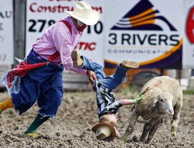 Fathers pacify the bulls and horses, sheep and children. Photo funny, but not it dangerous?